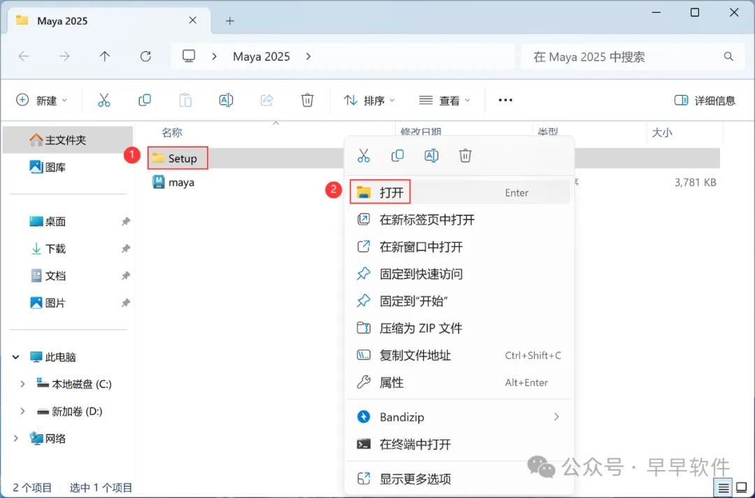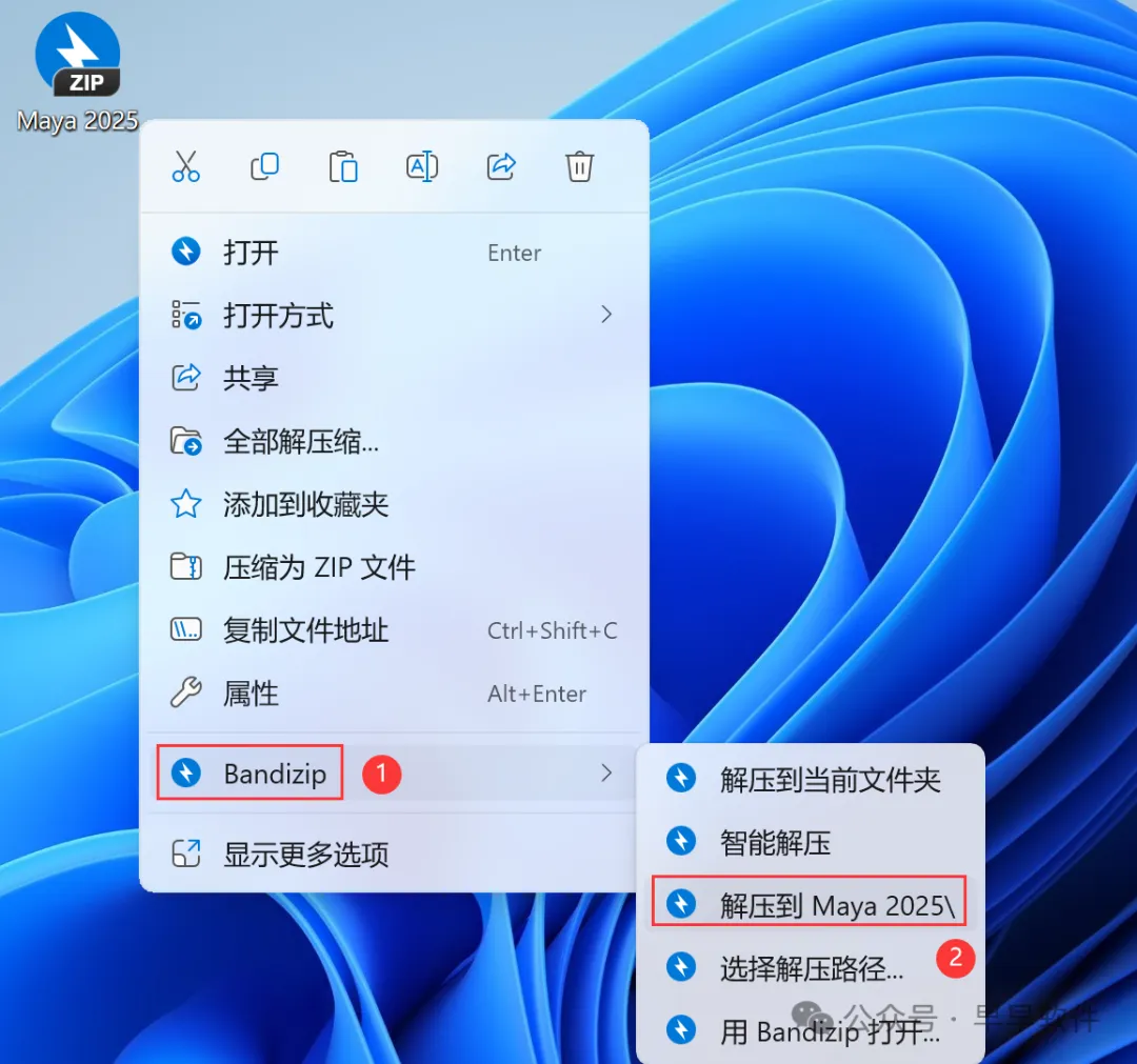 1、下载Maya 2025软件安装包到电脑上,右键选择【解压到Maya 2025\】