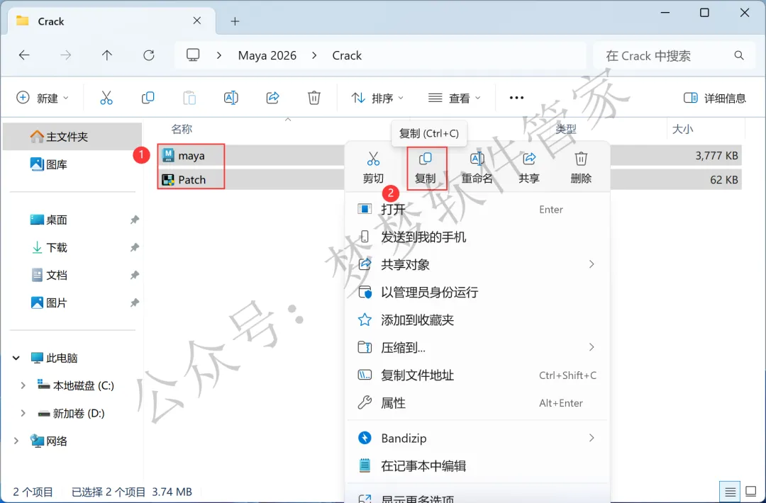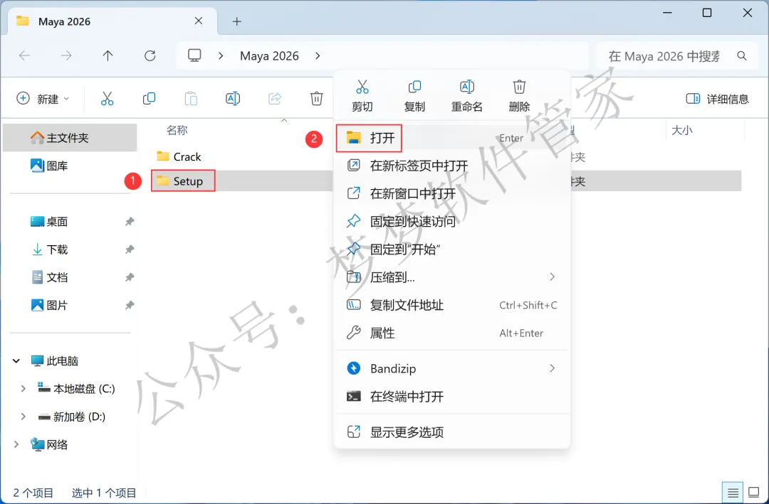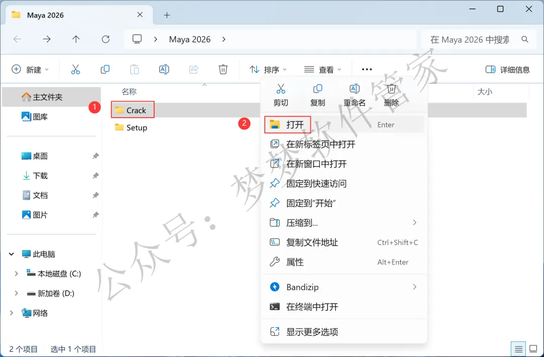 10、回到Maya 2026文件夹,找到【Crack】文件夹,右键【打开】它