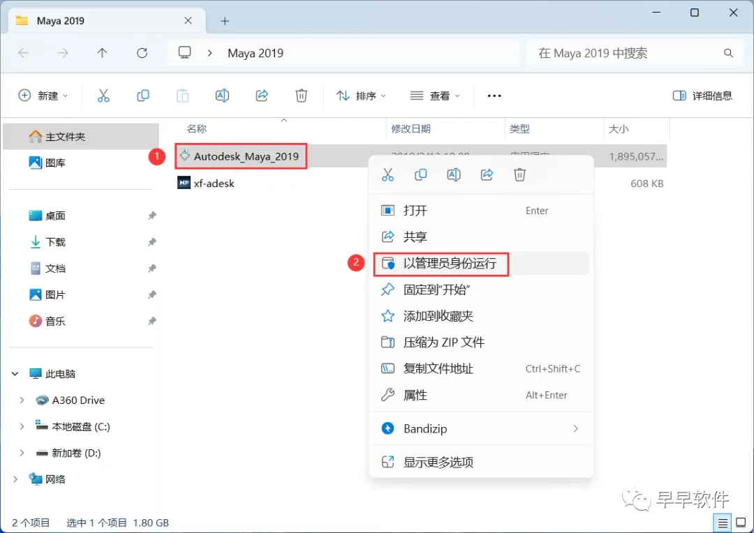 3、找到【Autodesk_Maya_2019】应用程序,右键选择【以管理员身份运行】它