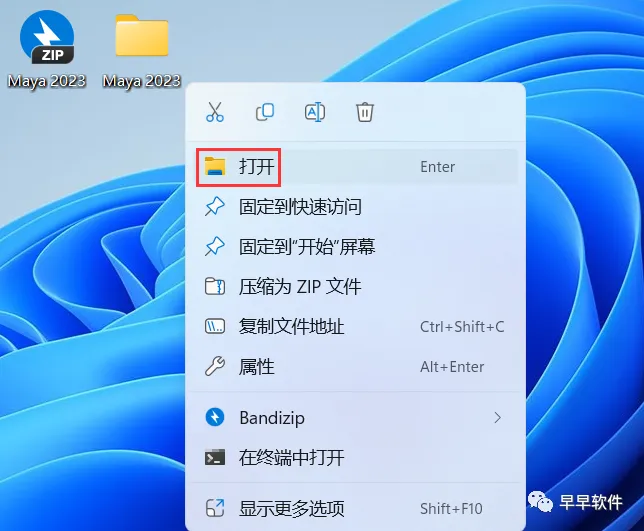 15、回到桌面,右键桌面上的【Maya 2023软件图标】,点击【打开】