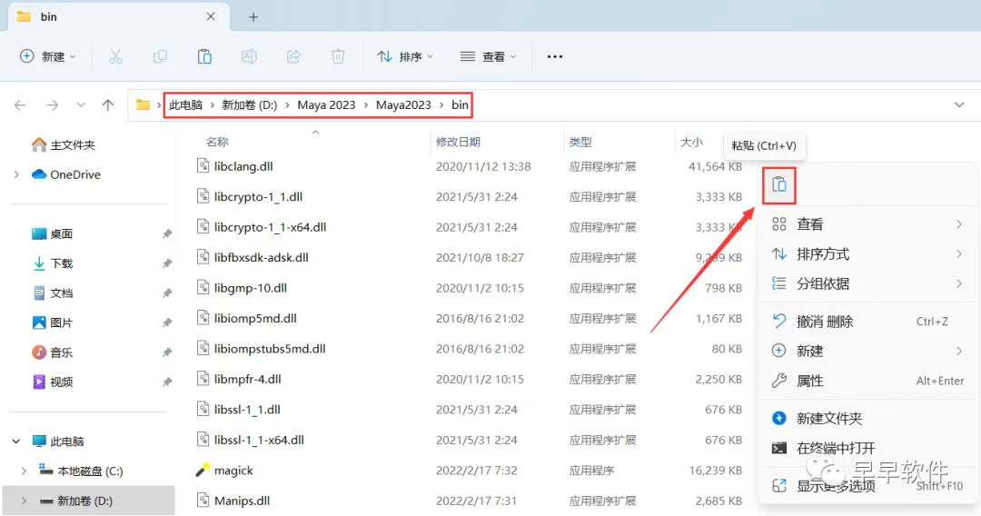 10、回到Maya 2023文件夹,找到【Crack】文件夹,右键【打开】它