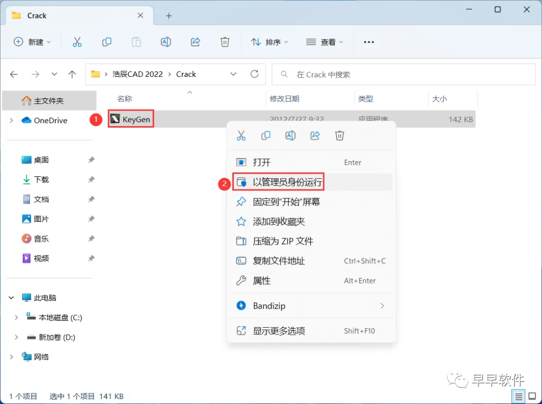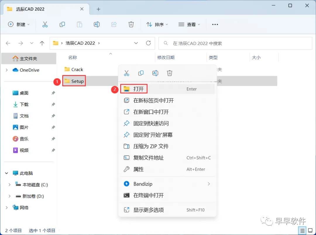10、回到浩辰CAD 2022文件夹,找到【Crack】文件夹,右键【打开】它