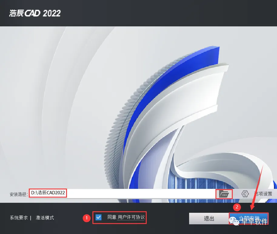 12、选择浩辰CAD 2022软件安装路径:步骤6可查看,再点击【PJ】