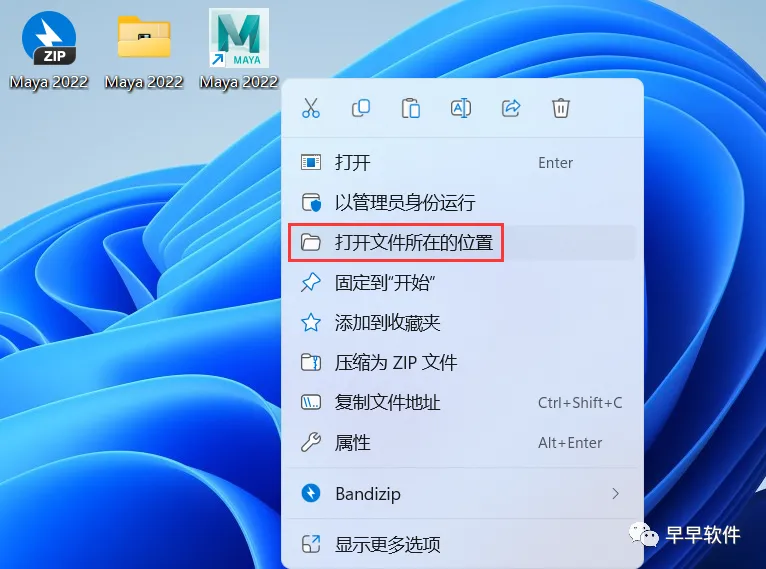 11、回到桌面,右键桌面上的【Maya 2022软件图标】,点击【打开文件所在的位置】