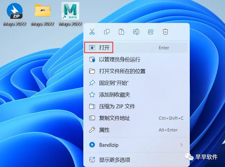 16、回到桌面,右键桌面上的【Maya 2022软件图标】,点击【打开】