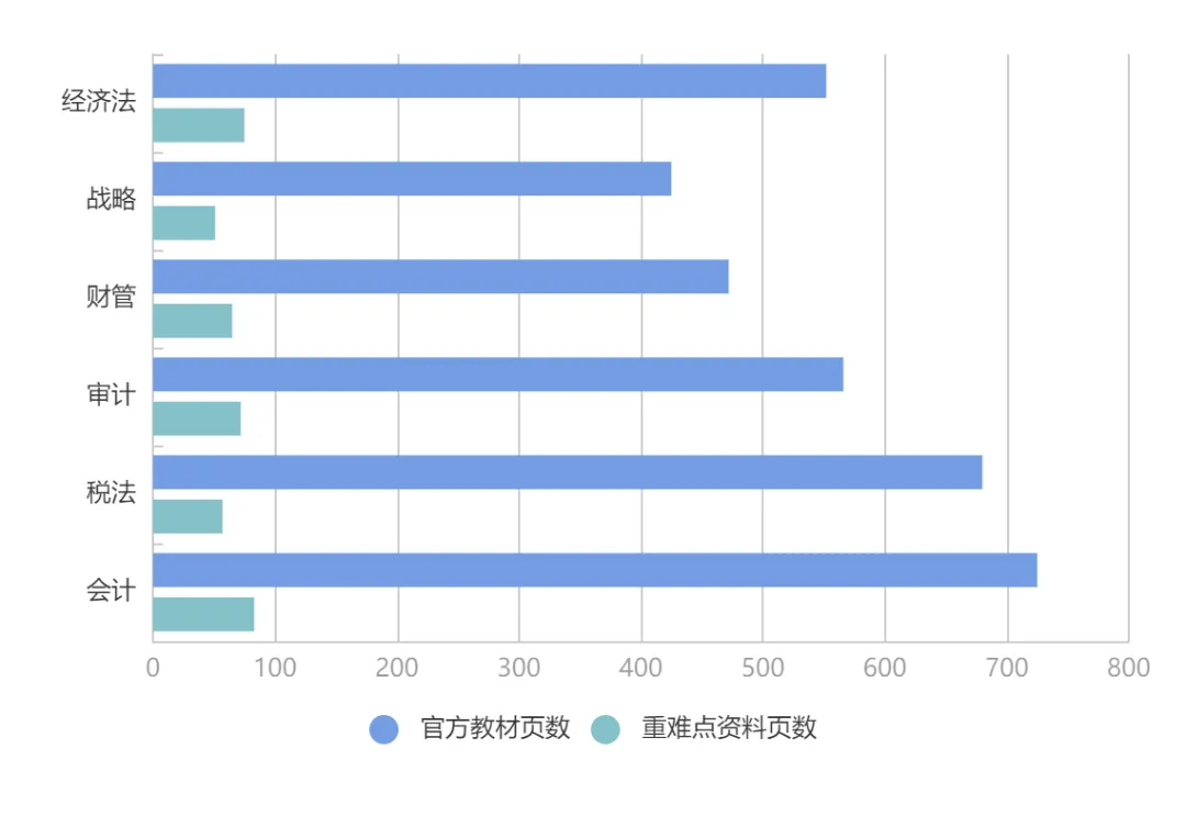 重难点材料以内容精简为原则,删减掉赘余的内容,减少非重点的篇幅,留下的都是精华,平均一科不到70页,几乎压缩至教材的1/10!哪怕是让考生最废心力的会计,也只有不到90页!精华内容全整理,不必再苦恼教材太冗长,随便一翻都是重点!▼重难点与官方教材页数对比▼