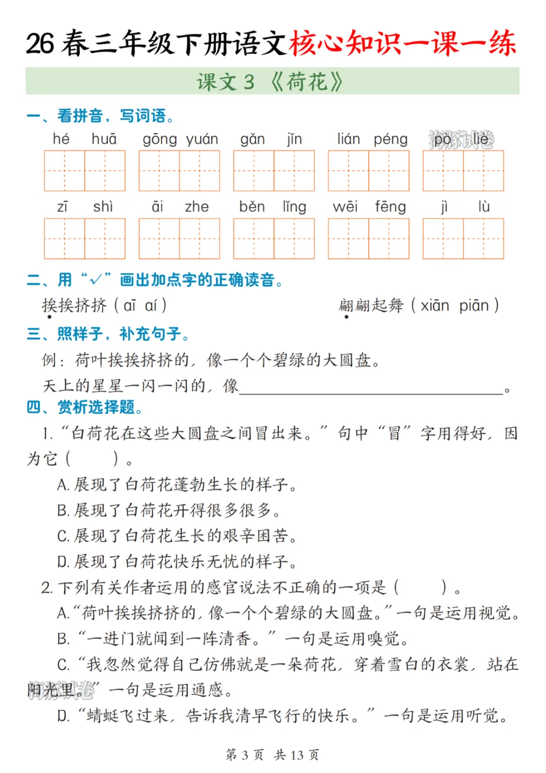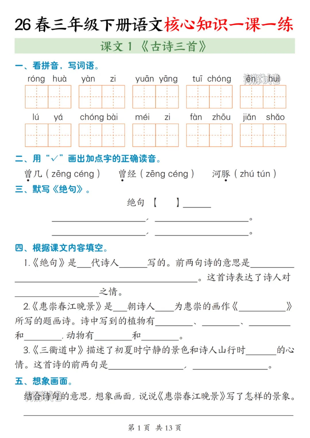 三年级(下)语文核心知识一课一练