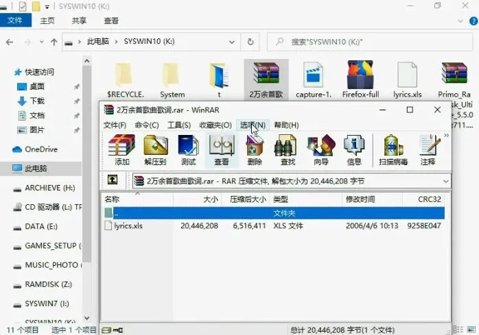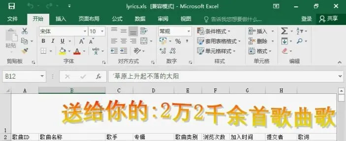 送给你的礼物:2万2千余首歌曲歌词(用安装好的Excel 2016打开):