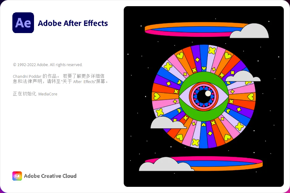创建电影级影片字幕、片头和过渡。从剪辑中删除物体。点一团火或下一场雨。将徽标或人物制成动画。甚至在 3D 空间中导航和设计。利用 After Effects 这款行业标准的动态图形和视觉效果软件,您可以将任何灵感制成动画。下图是AE 2023版本的启动图,这是AE的第23个版本(AE 2023版本号为23.0)。
