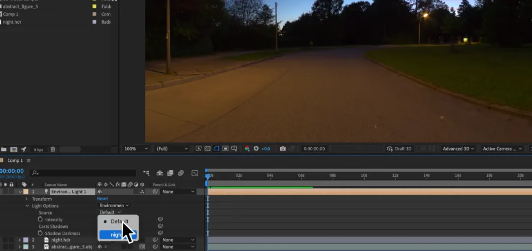 - 其他 3D 图层,例如凸出文本和形状图层、相机和光线