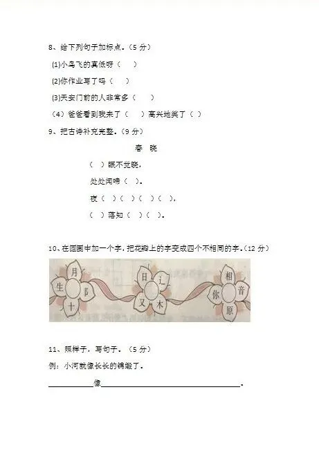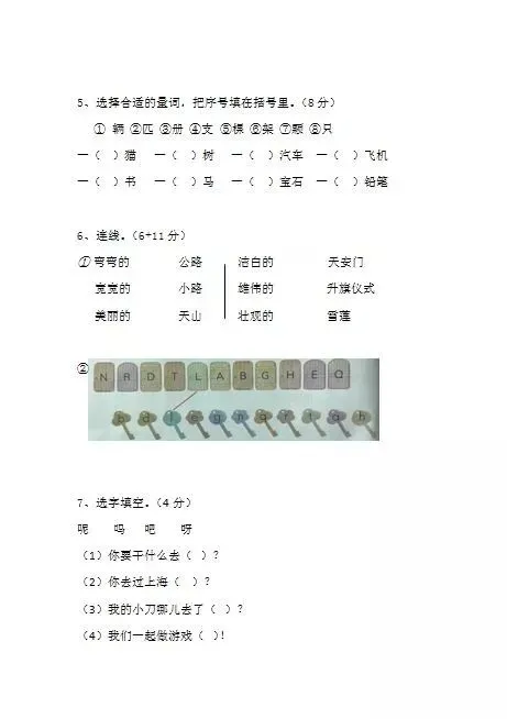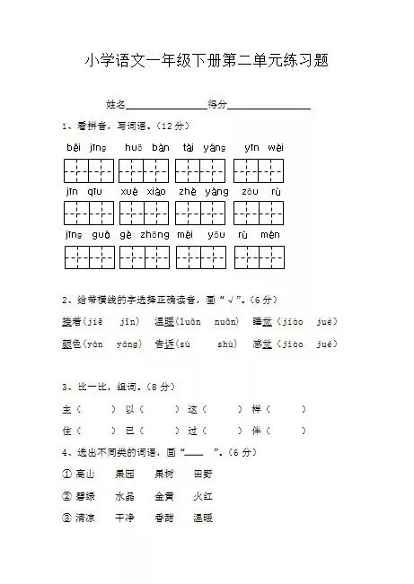 免费下载:一上(反义词+同音字+形近字+量词+数笔画)归类练习