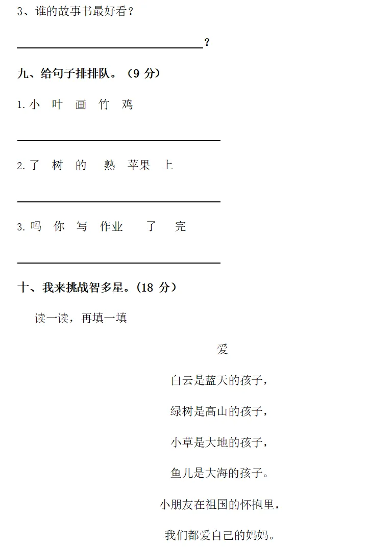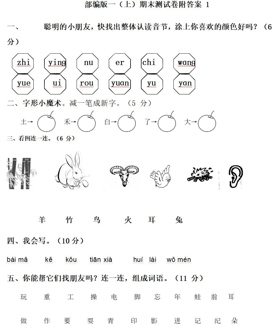 >免费下载:部编版一(上)期末测试卷附答案1