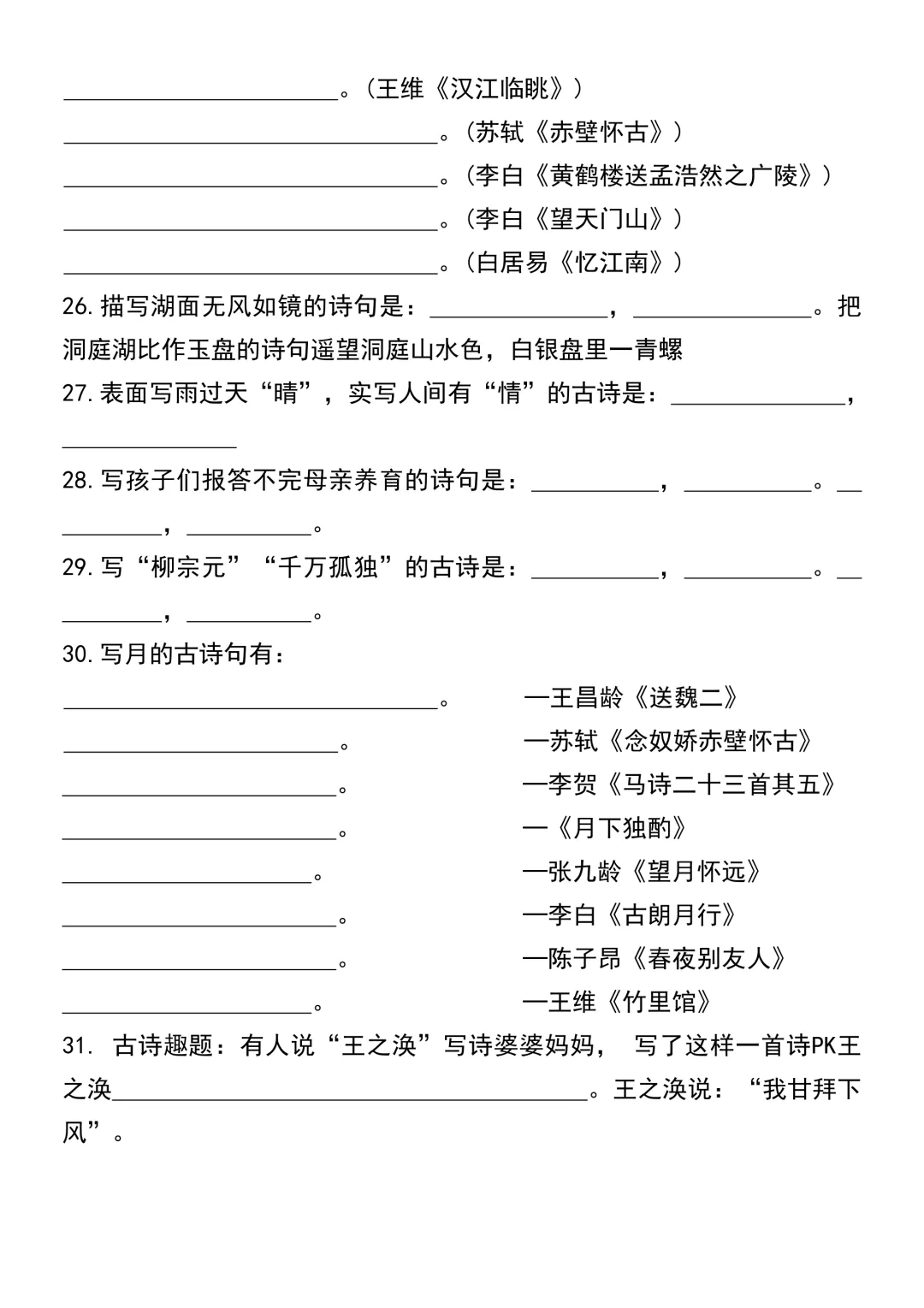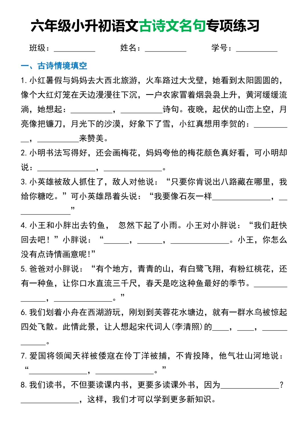【免费下载】小升初语文《古诗词名句专项默写》| 可下载打印