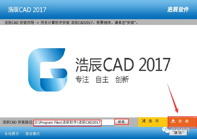 11、选择浩辰CAD 2017软件安装路径:步骤5可查看,再点击【PJ】