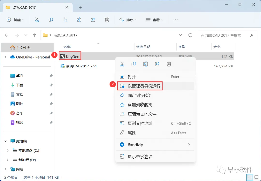 10、回到浩辰CAD 2017文件夹,找到【KeyGen】程序,右键选择【以管理员身份运行】它