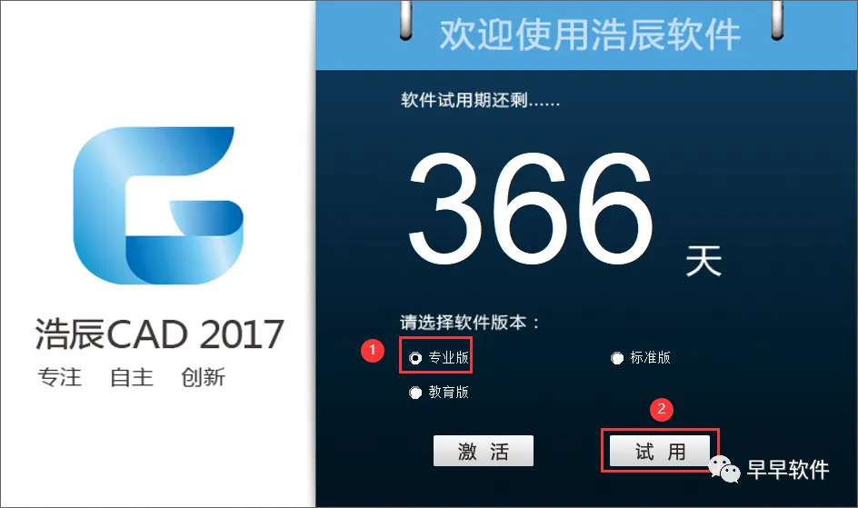 16、勾选【专业版】,再点击【试用】