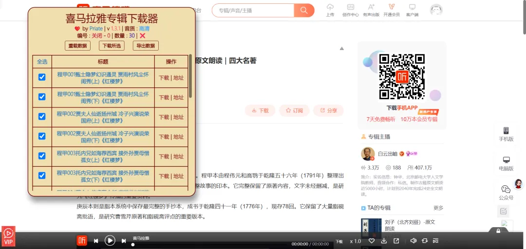 喜马拉雅网站音频下载方法