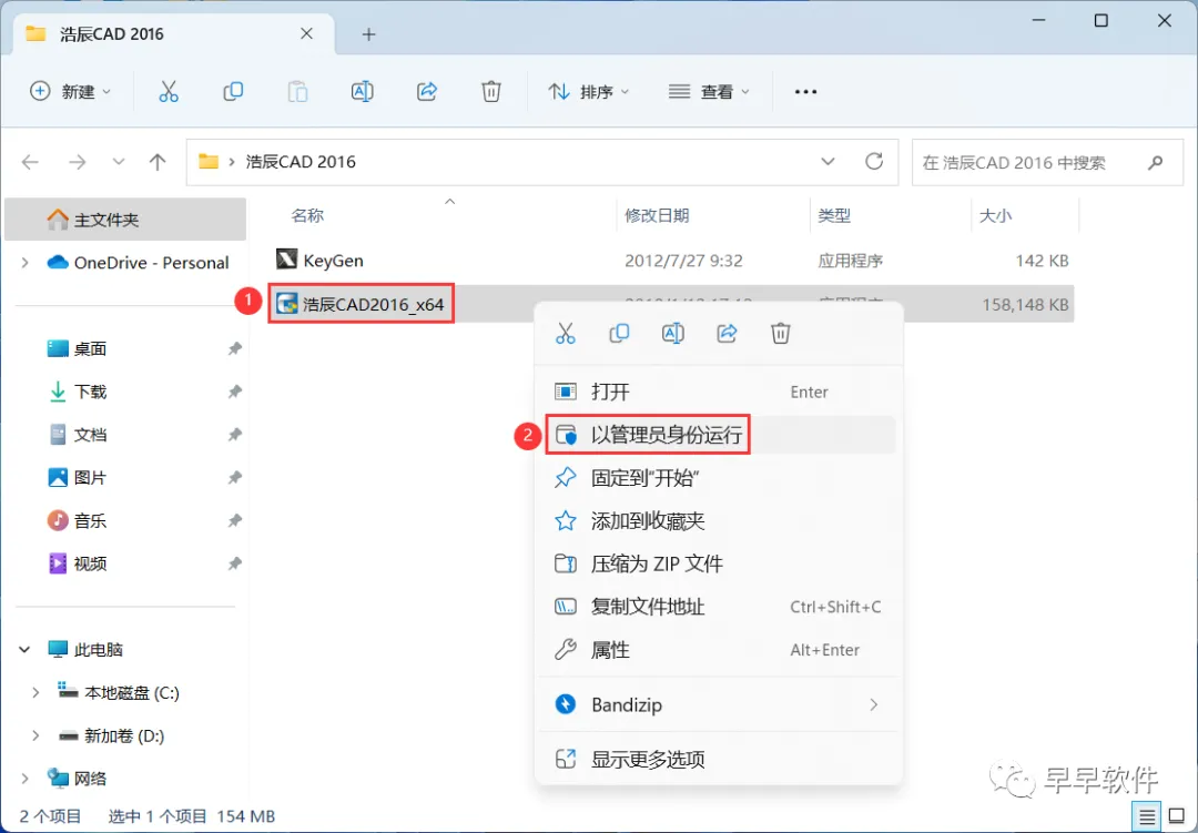 10、回到浩辰CAD 2016文件夹,找到【KeyGen】程序,右键选择【以管理员身份运行】它
