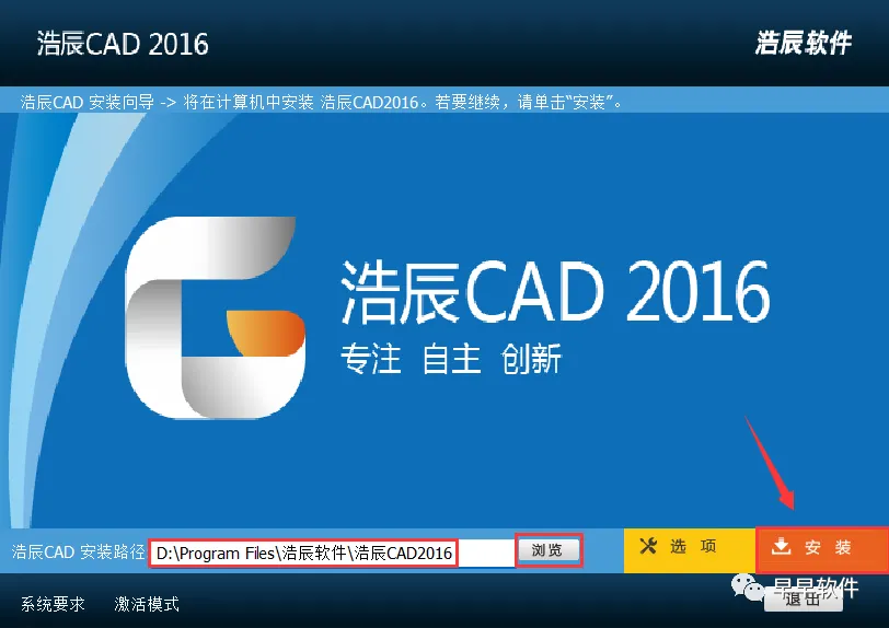 11、选择浩辰CAD 2016软件安装路径:步骤5可查看,再点击【PJ】