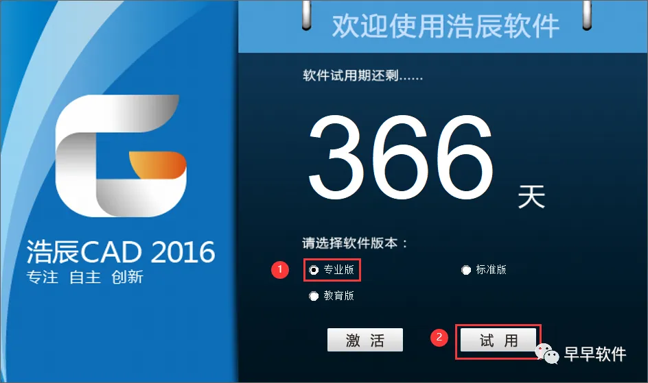 16、勾选【专业版】,再点击【试用】