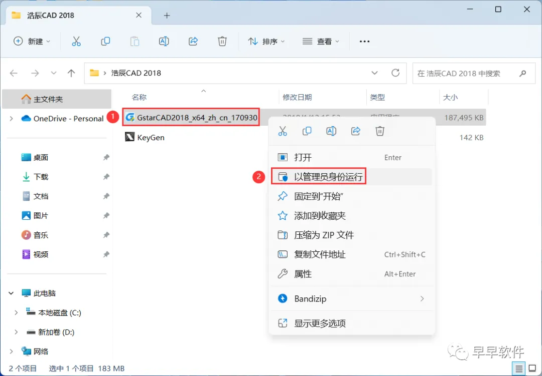 8、回到浩辰CAD 2018文件夹,找到【KeyGen】程序,右键选择【以管理员身份运行】它
