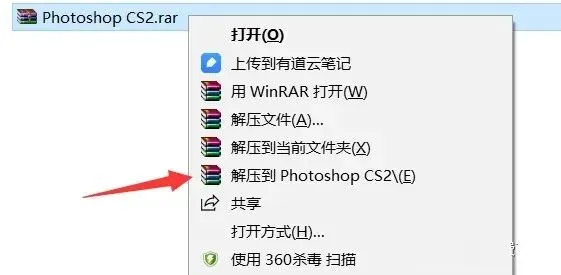 1、点击软件安装包,鼠标右击选择解压到Photoshop CS2