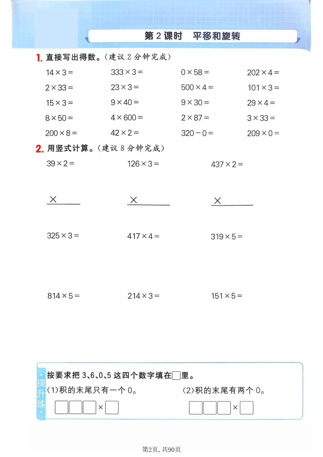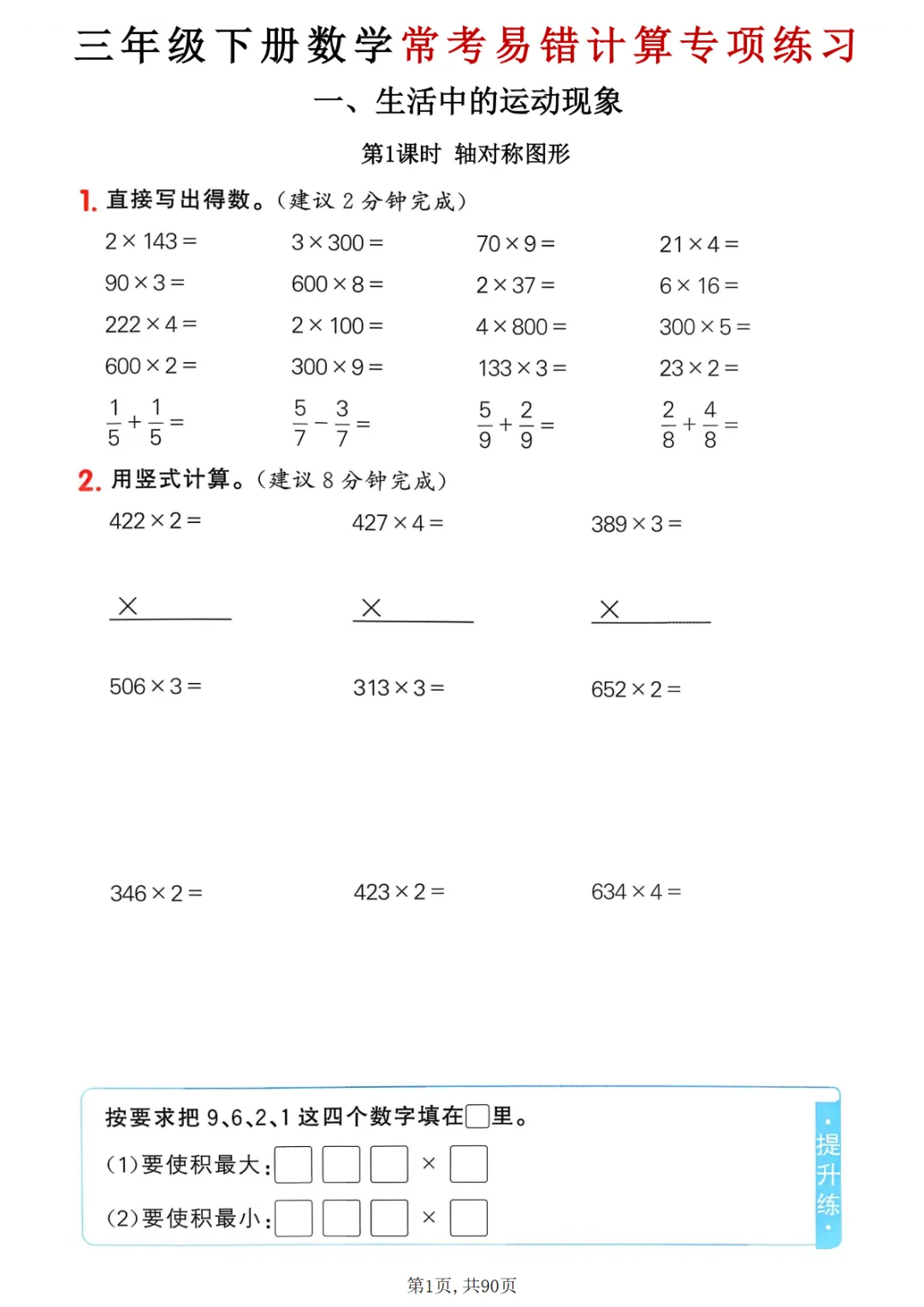 【免费下载】三年级(下)数学 计算专项练习,PDF电子版,共90页,可打印