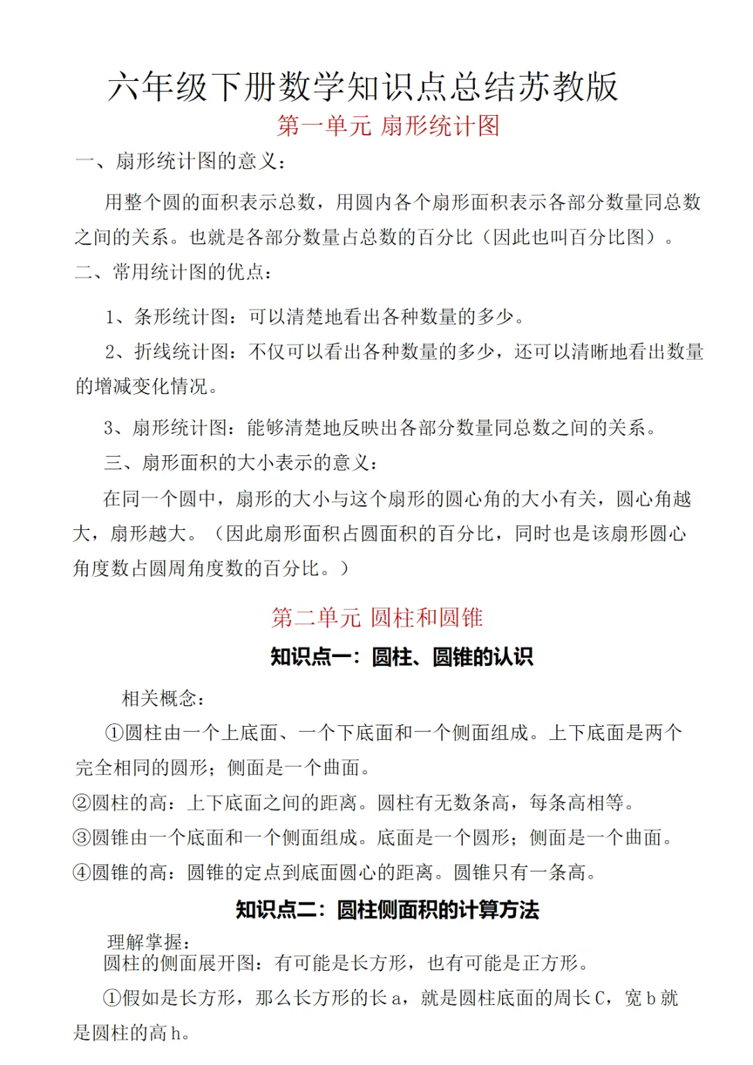 【免费下载】六年级(下)数学 知识点汇总《苏教版》,PDF电子版,共7页,可打印