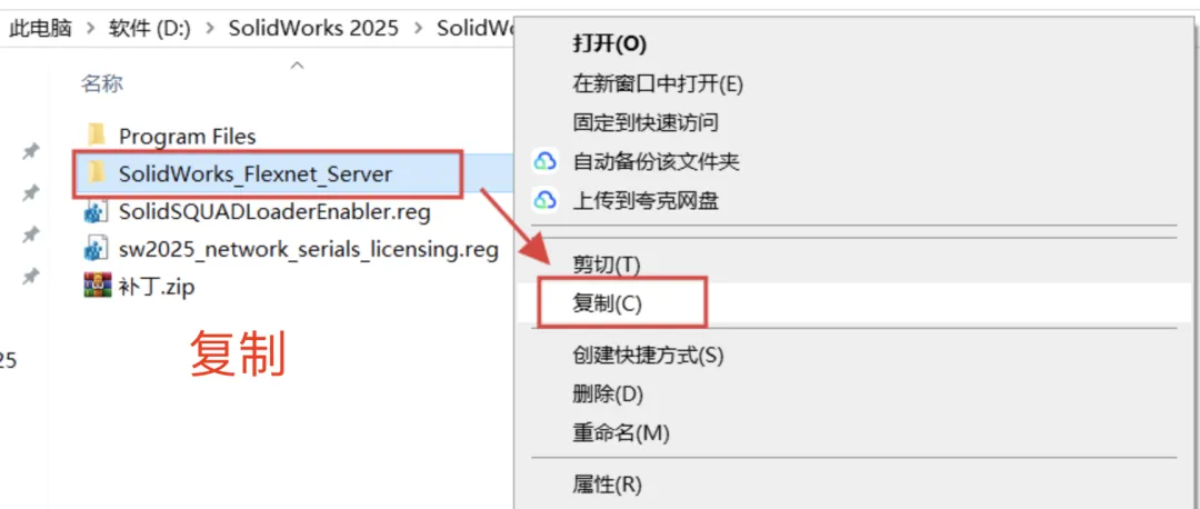 6、选中文件夹:Solidworks_Flexnet_Server,然后复制