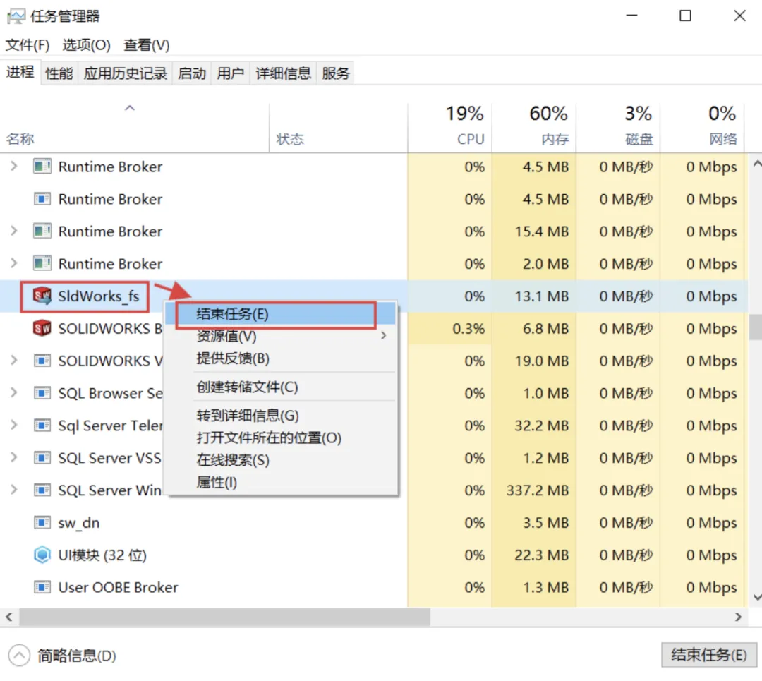 4、打开任务管理器(右键任务栏或按Ctrl+Shift+Esc)