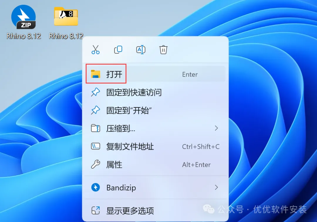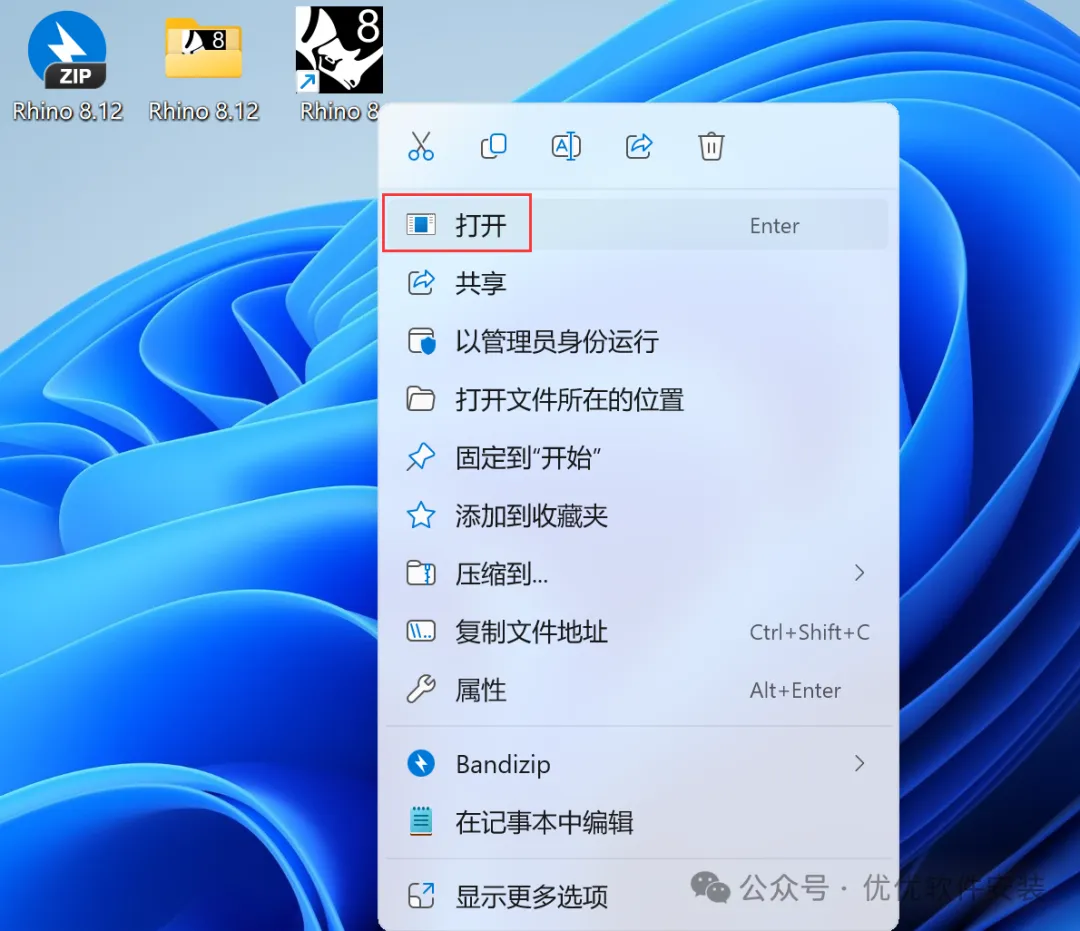 12、回到桌面,右键桌面上的【Rhino 8软件图标】,点击【打开】