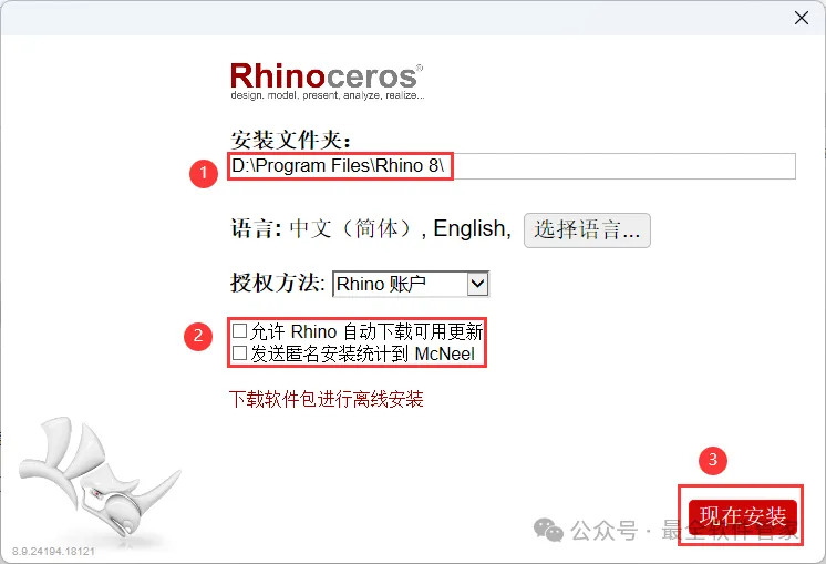 11、不勾选【Install…Rhinoceros 6】和【Install…Rhinoceros 7】,再点击【Install】