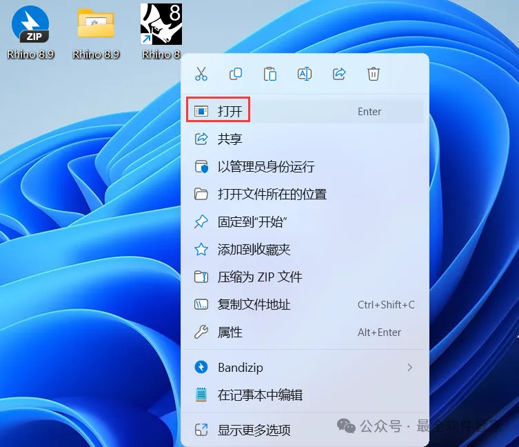 14、回到桌面,右键桌面上的【Rhino 8软件图标】,点击【打开】