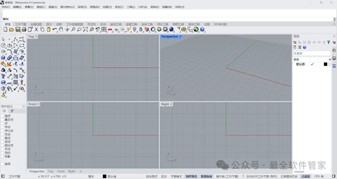 Rhino 8.9中文名为“犀牛软件”,是一款高级建模软件,拥有着强大的 3D 建模设计功能,可以为您提供创建模型、编辑、分析、渲染、动画设计与转换 NURBS线条、曲面、实体与多边形网格等等全套的模型设计。Rhinoceros 可以让您不受限制的自由设计三维模型,模拟设计出任何你能想象到的形状。