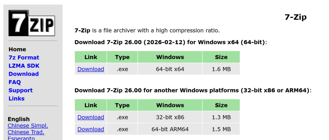 7-Zip 适用于 Windows 11 / 10 / 8 / 7 / Vista / XP / 2022 / 2019 / 2016 / 2012 / 2008 / 2003 / 2000。