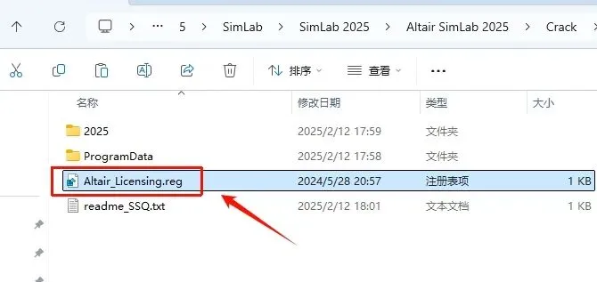 2.打开刚刚解压的文件夹,双击打开”Crack“文件夹,双击运行”Altair_Licensing.reg“注册表文件