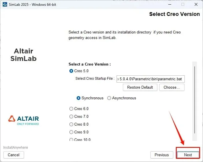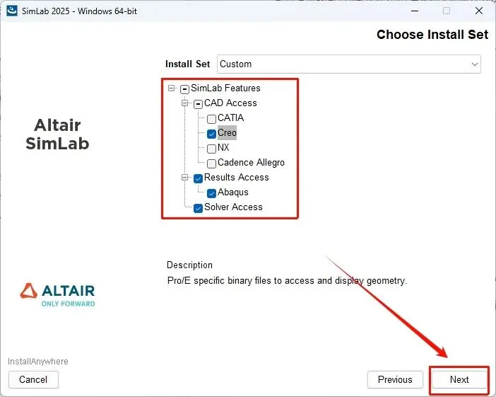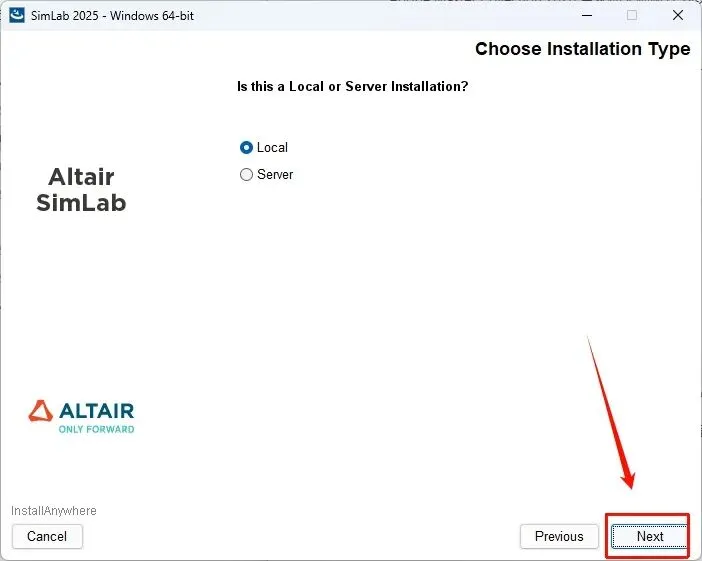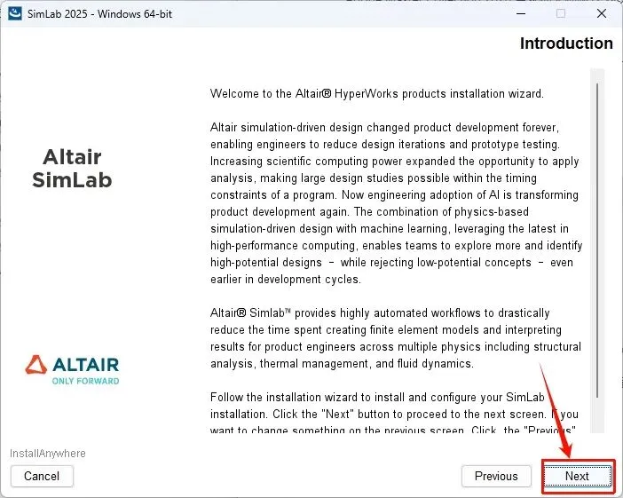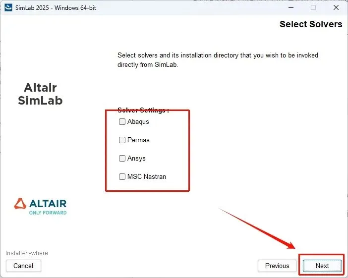 16.指定要使用的非Altair求解器的安装位置,点击“Next”