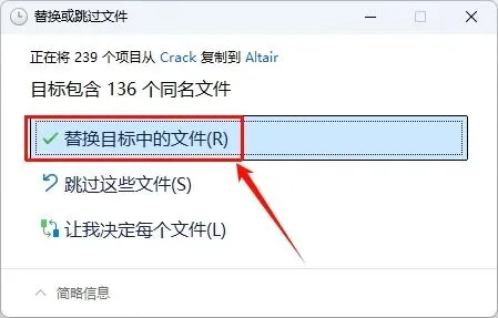 25.点击“替换目标中的文件“(若提示需要权限,勾选“为所有...”,点击“继续”)
