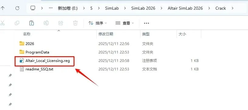 2.打开刚刚解压的文件夹,双击打开”Crack“文件夹,双击运行”Altair_Local_Licensing.reg“注册表文件