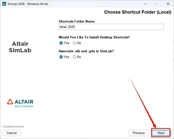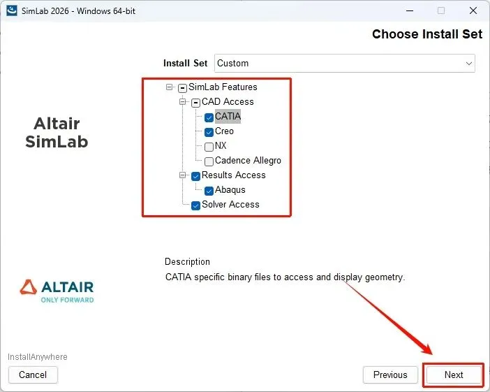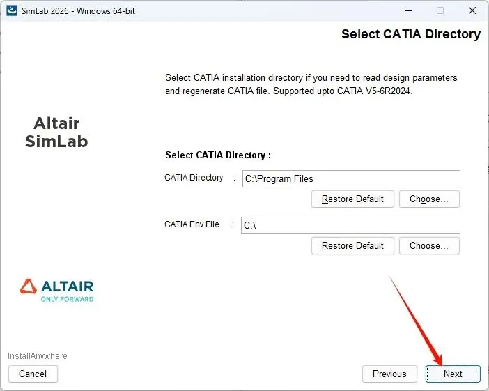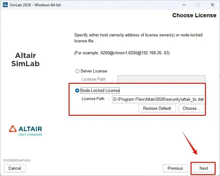 16.指定要使用的非Altair求解器的安装位置,点击“Next”