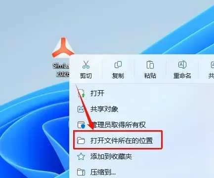 22.在桌面上选中”SimLab 2026”软件图标,鼠标右键点击“打开文件所在位置”