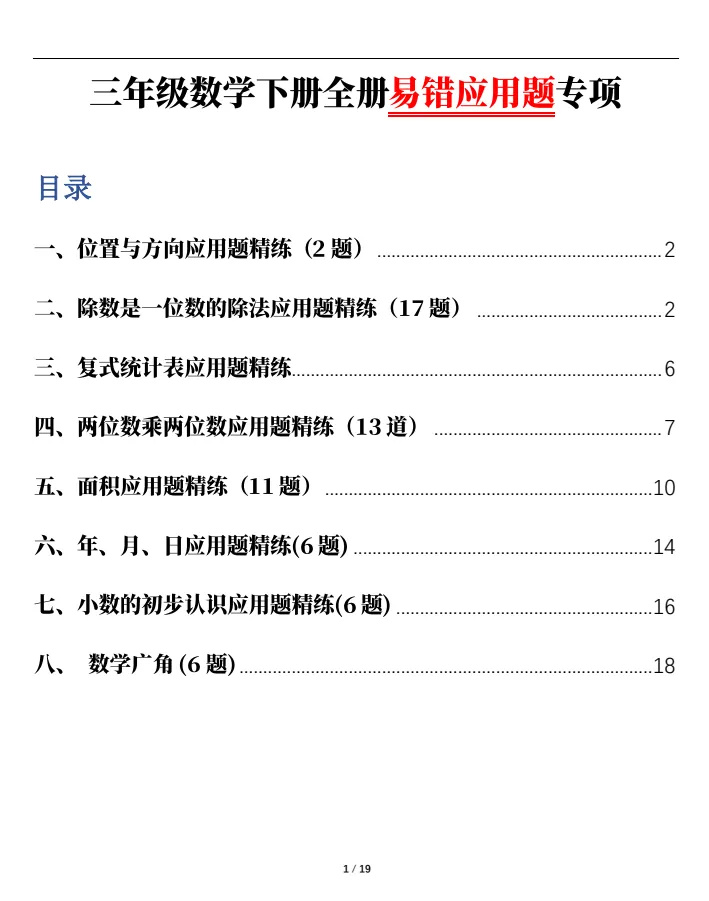今天,给大家分享:26春三下数学全册易错应用题专项!电子版!可下载打印!如果觉得这份资料不错,建议分享到班级群/年级群,让其他家长打印出来,帮助孩子学习