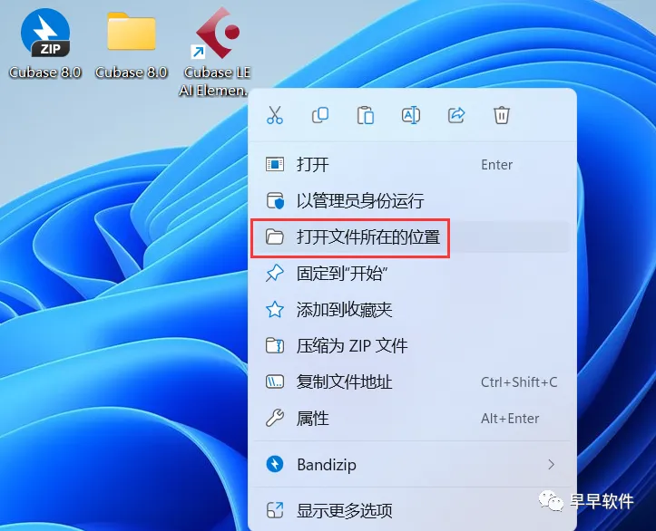 14、回到桌面,右键桌面上的【Cubase 8.0软件图标】,点击【打开文件所在的位置】