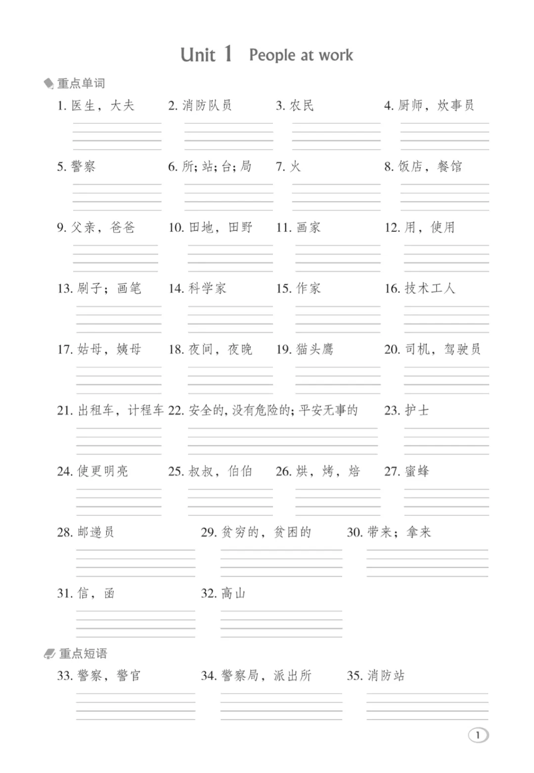 【免费下载】四年级(下)英语 第一二单元基础知识默写单《外研版(三起)》,PDF电子版,共6页,可打印