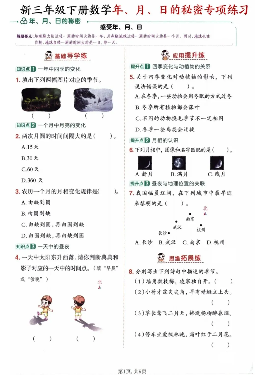 【免费下载】三年级(下)数学 《年、月、日的秘密》专项训练,PDF电子版,共9页,可打印