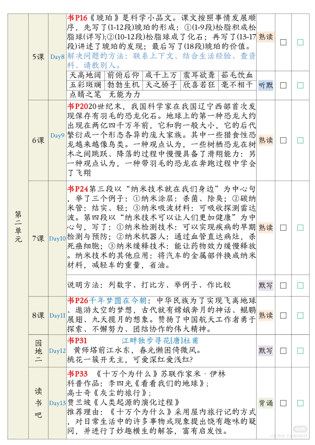 【免费下载】四年级(下)语文 预复习背诵闯关表,PDF电子版,共7页,可打印
