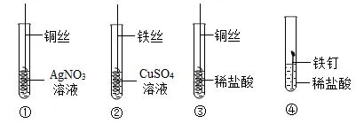 7. 如图所示为探究金属化学性质的四个实验,要证明铜、铁、银的金属活动性,一定要做的实验是