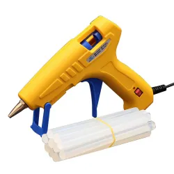 2. 热熔胶是一种在常温下为固态的粘合剂,使用时先用热熔胶枪加热使其熔化,再凝固来粘合物体。用如图所示的一款热熔胶枪给热熔胶加热时,会闻到熔胶的气味,这是_____现象,这一现象说明分子___,热熔胶被胶枪挤出,并“粘”在物体上,说明分子间存在____力。