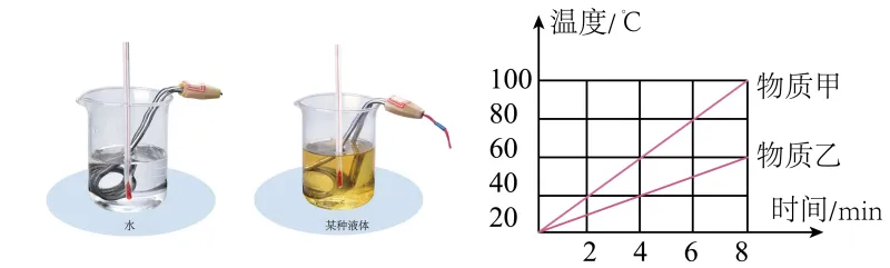 温度,甲液体的加热时间比较长D. 加热相同的时间,甲液体升高的温度小于乙液体