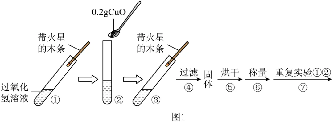 小组同学查阅资料发现氧化铜也可以作为过氧化氢分解的催化剂,于是进行相应探究:称量0.2g氧化铜,取5mL5%的过氧化氢溶液于试管中,进行如图1所示实验。